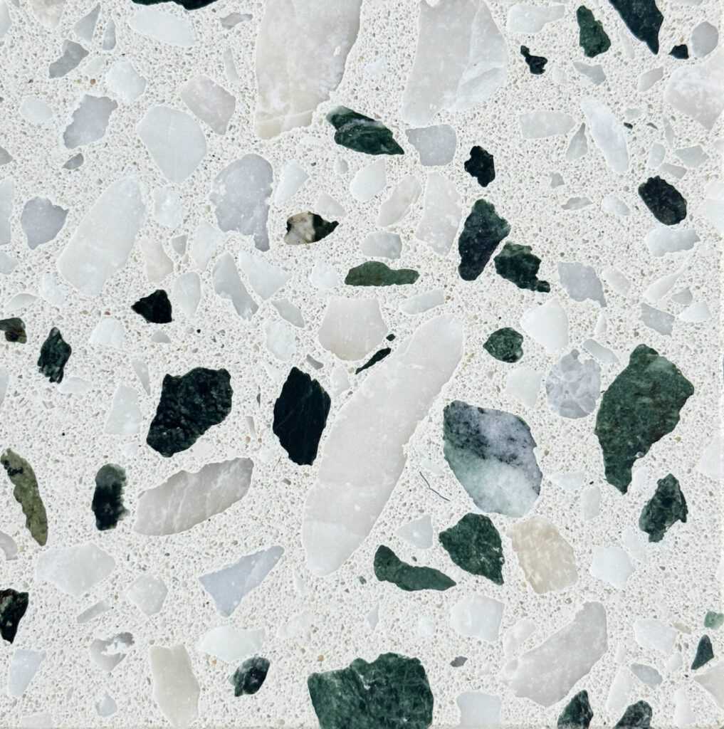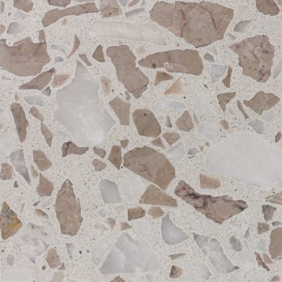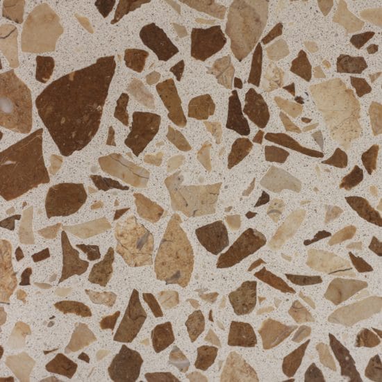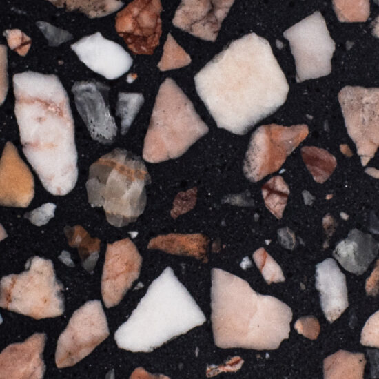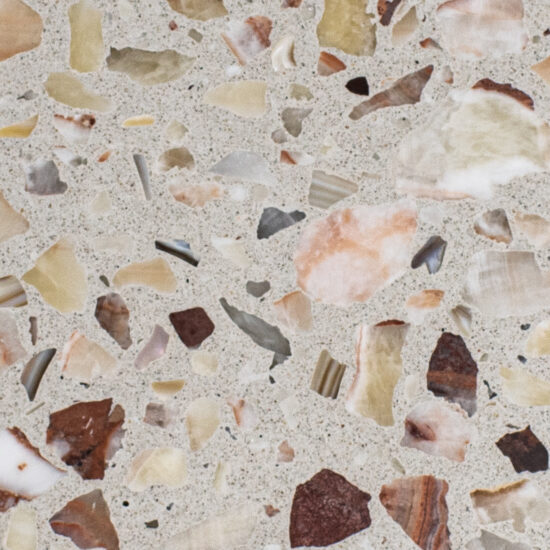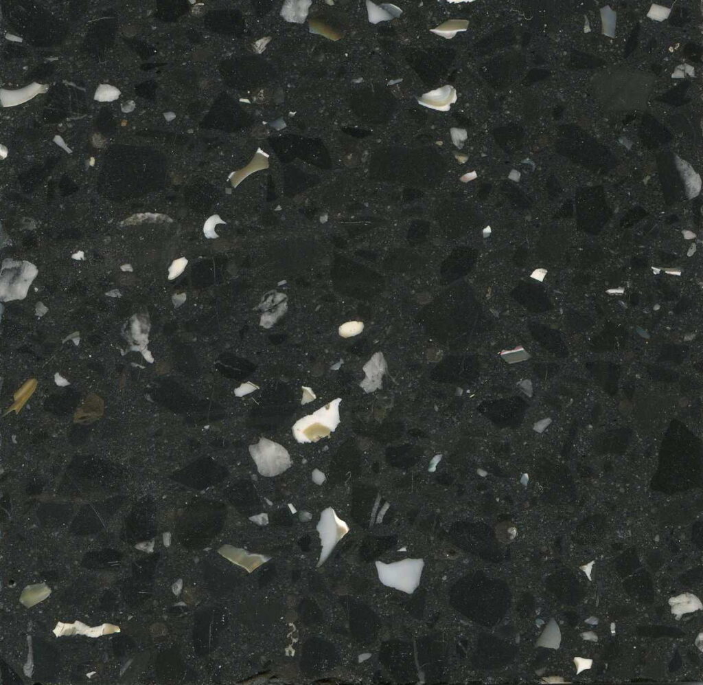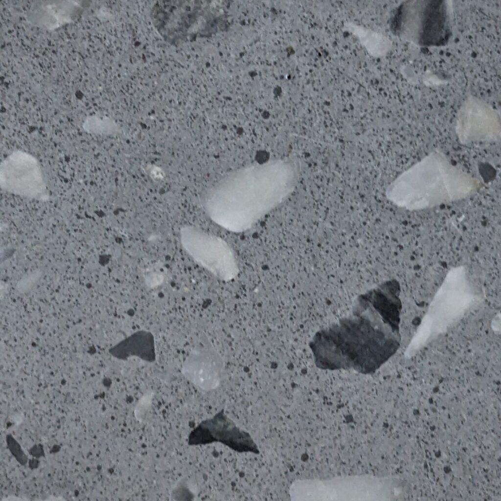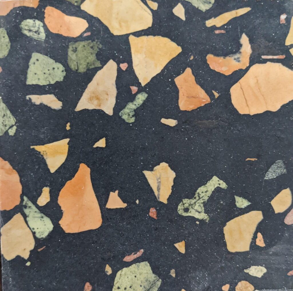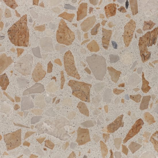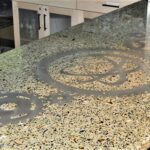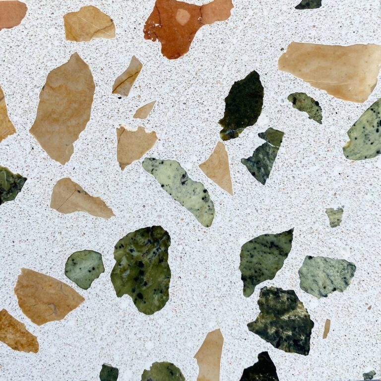 DEX Venizia is a concrete based terrazzo made in the flavor of traditional Venetian terrazzo. Its chunky look is the result of marble aggregate chips averaging ¾” to 1” and even up to 1 ½” in some finishes. Venizia is honed to a satin sheen and then sealed with a durable clear coat for superior protection.