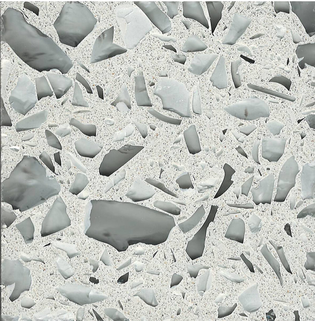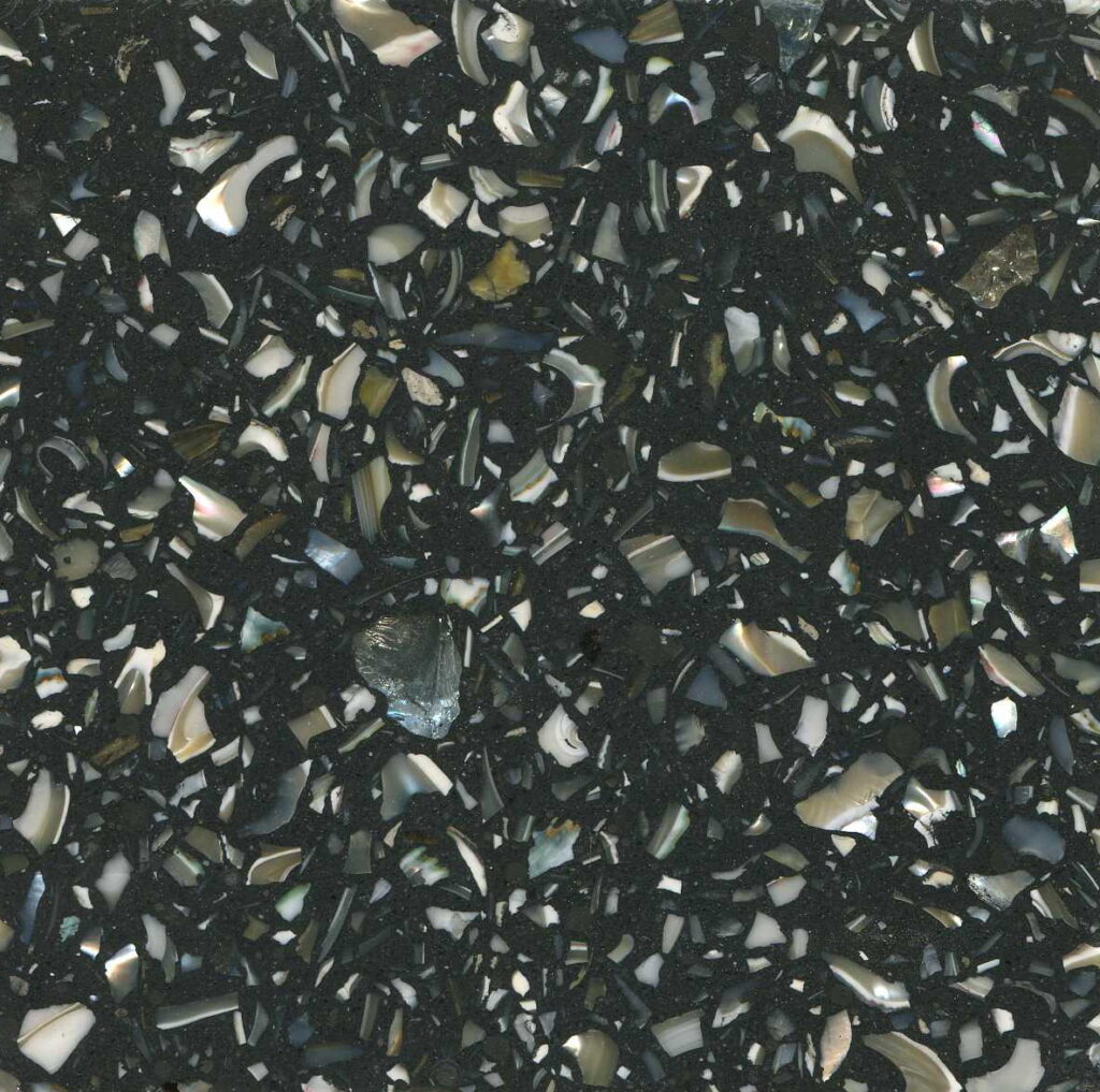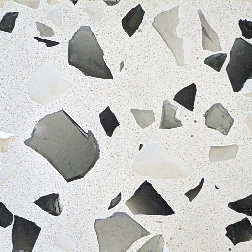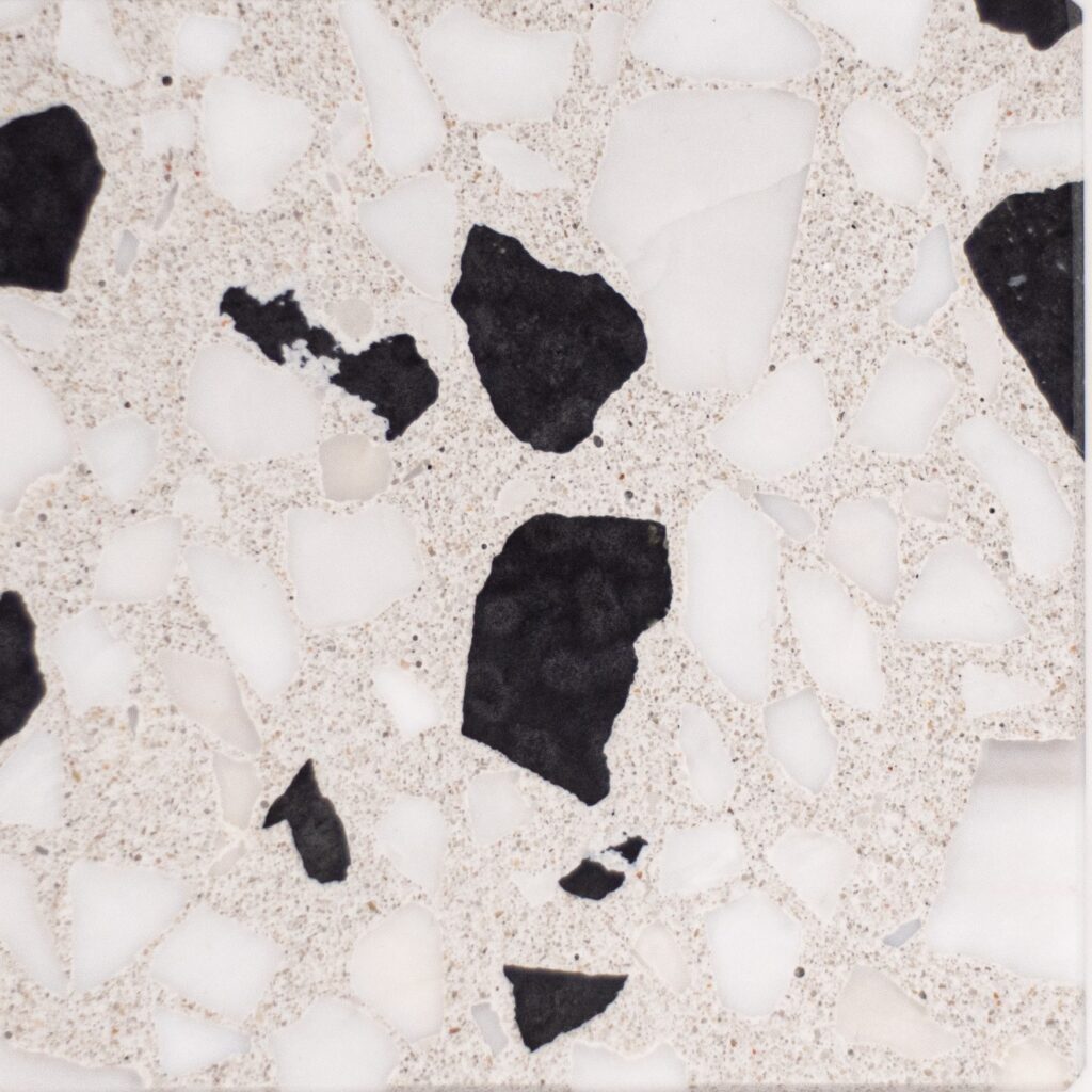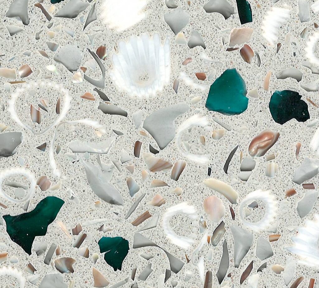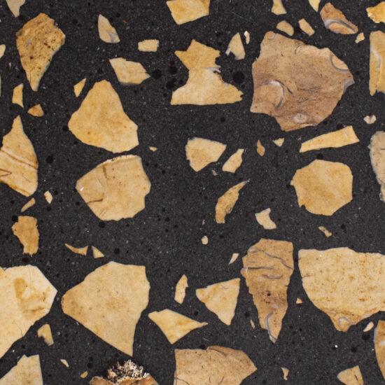 DEX Venizia is a concrete based terrazzo made in the flavor of traditional Venetian terrazzo. Its chunky look is the result of marble aggregate chips averaging ¾” to 1” and even up to 1 ½” in some finishes. Venizia is honed to a satin sheen and then sealed with a durable clear coat for superior protection.