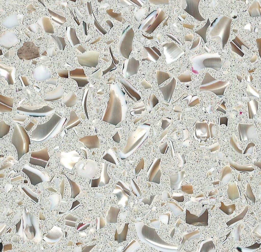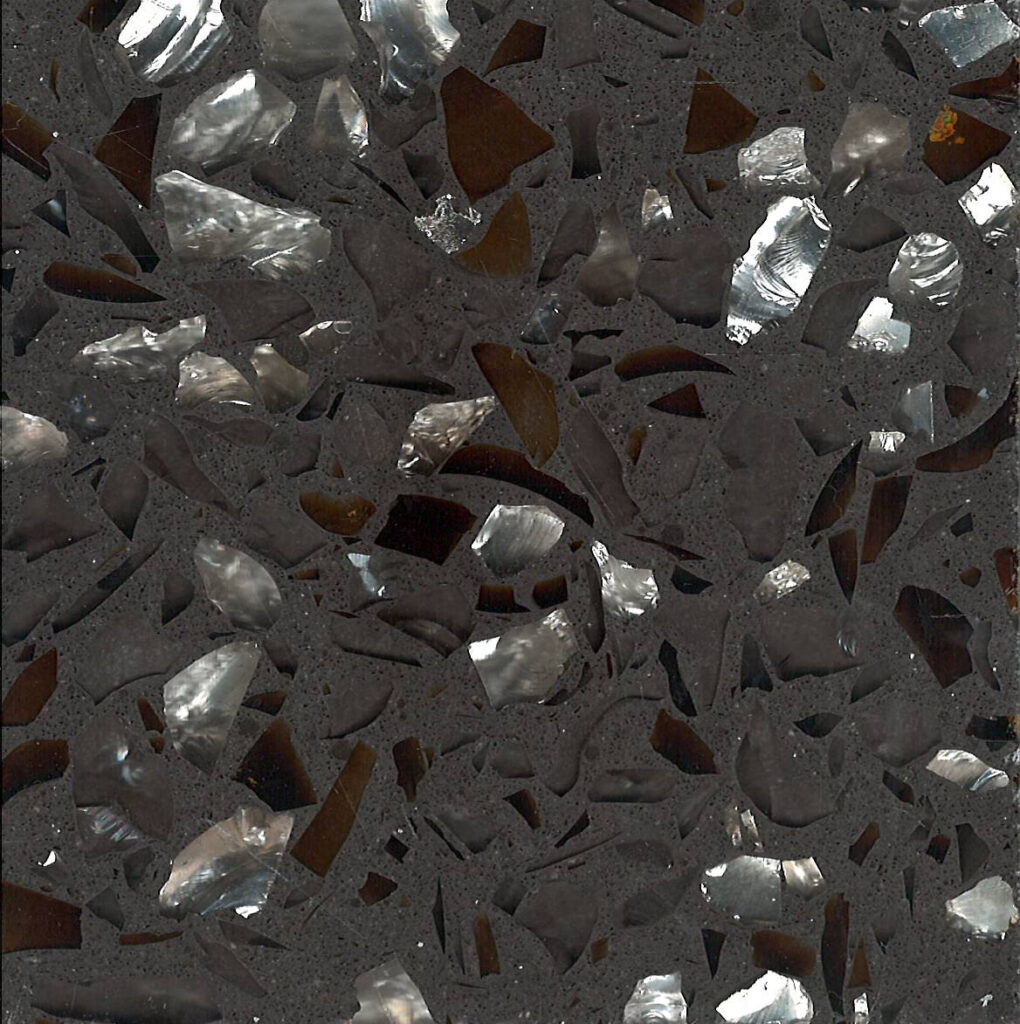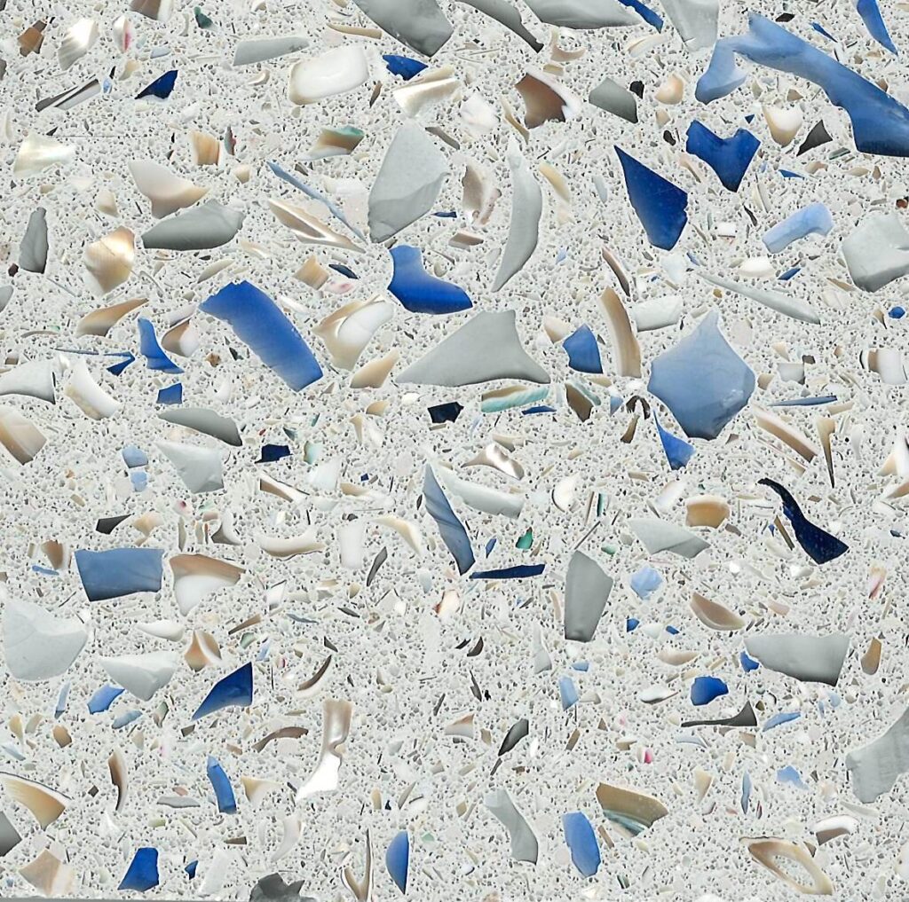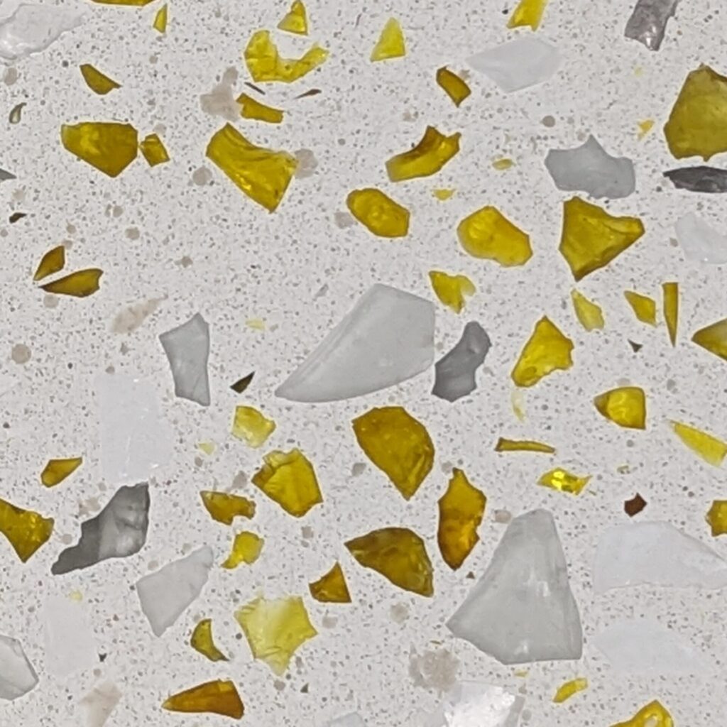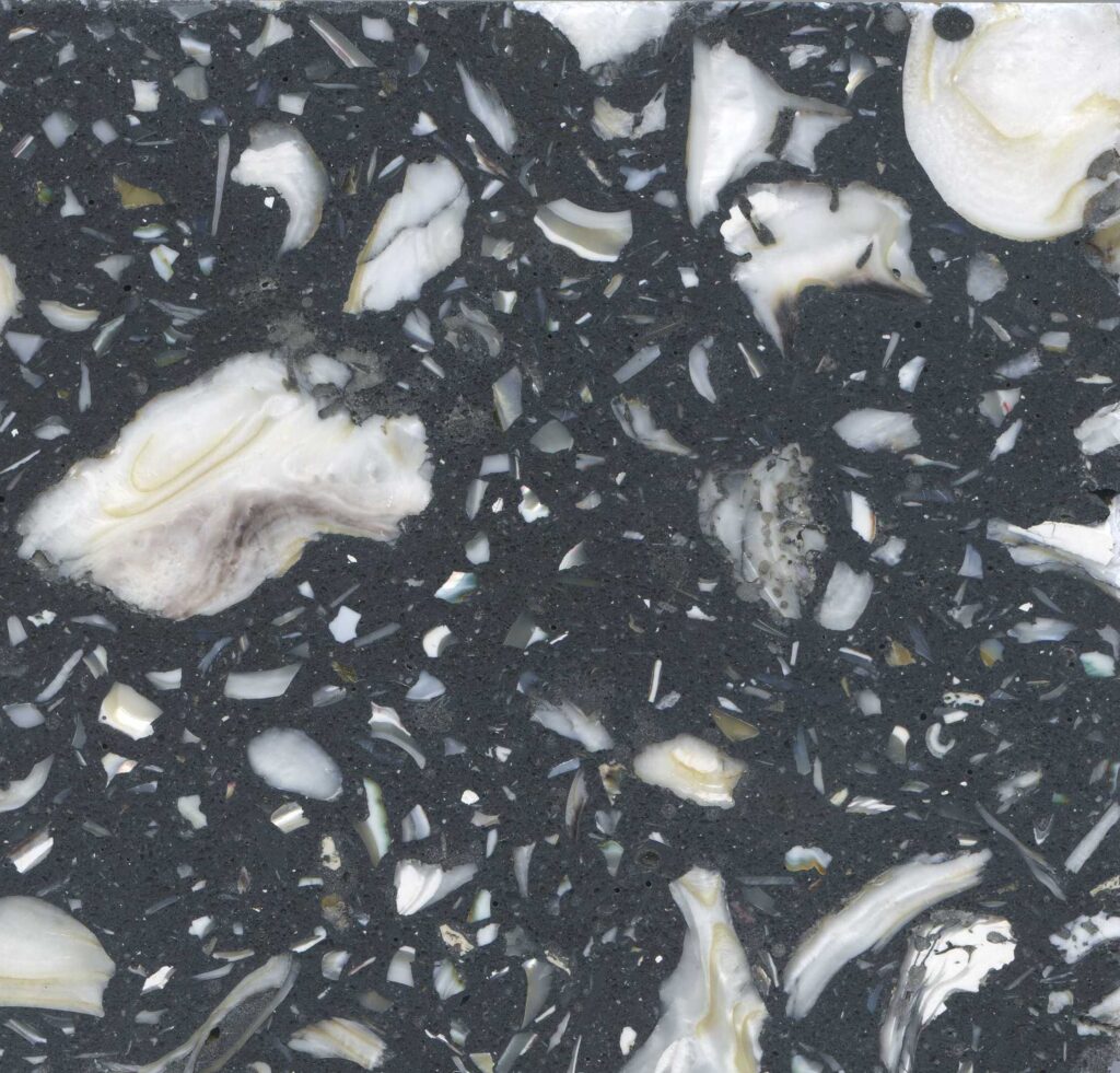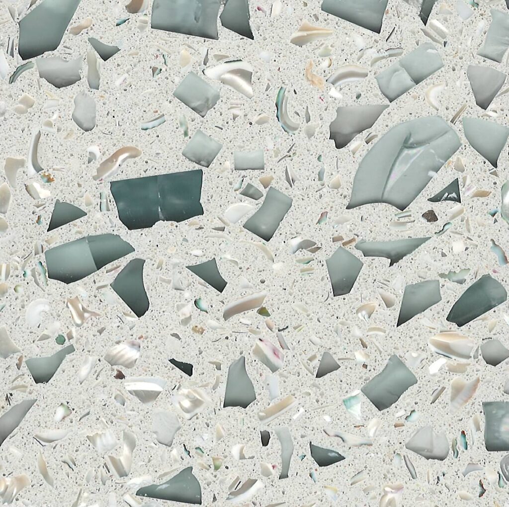 DEX Venizia is a concrete based terrazzo made in the flavor of traditional Venetian terrazzo. Its chunky look is the result of marble aggregate chips averaging ¾” to 1” and even up to 1 ½” in some finishes. Venizia is honed to a satin sheen and then sealed with a durable clear coat for superior protection.