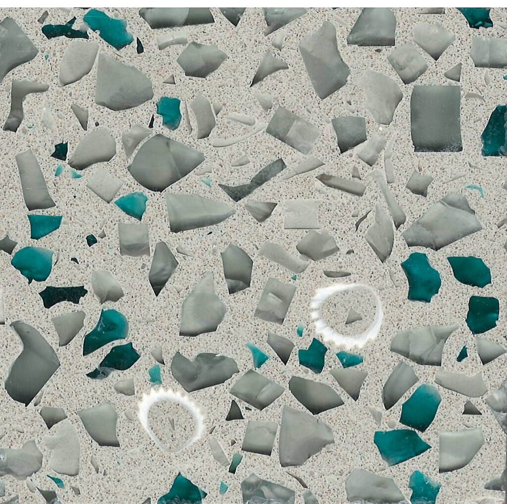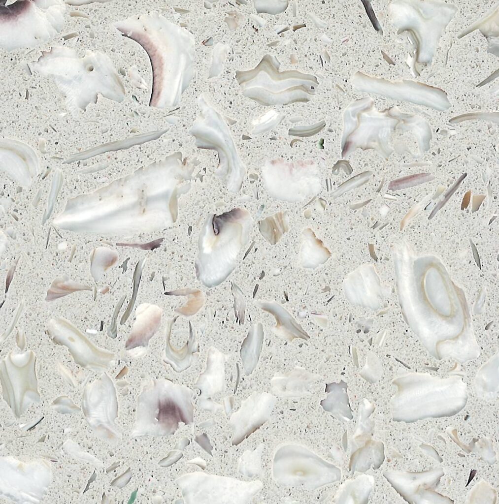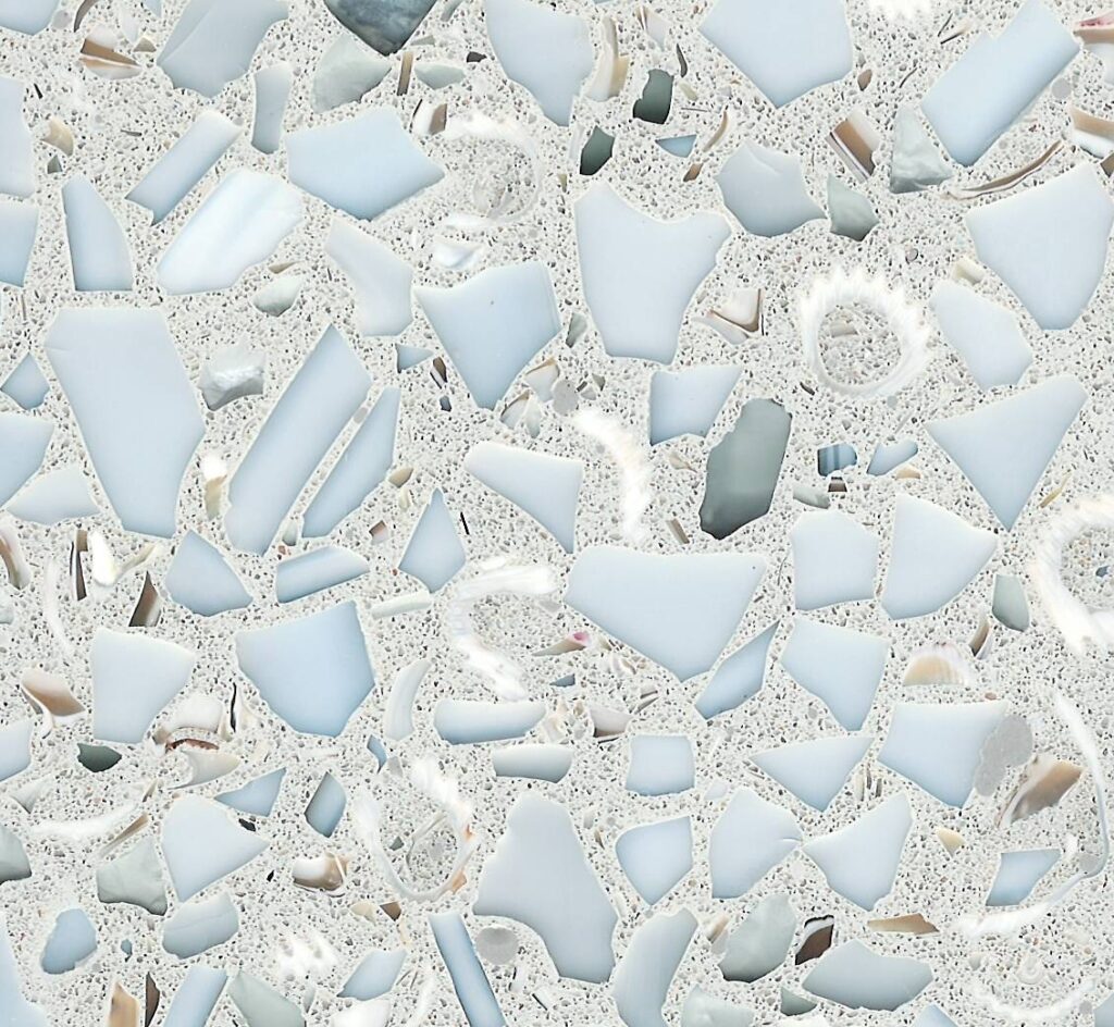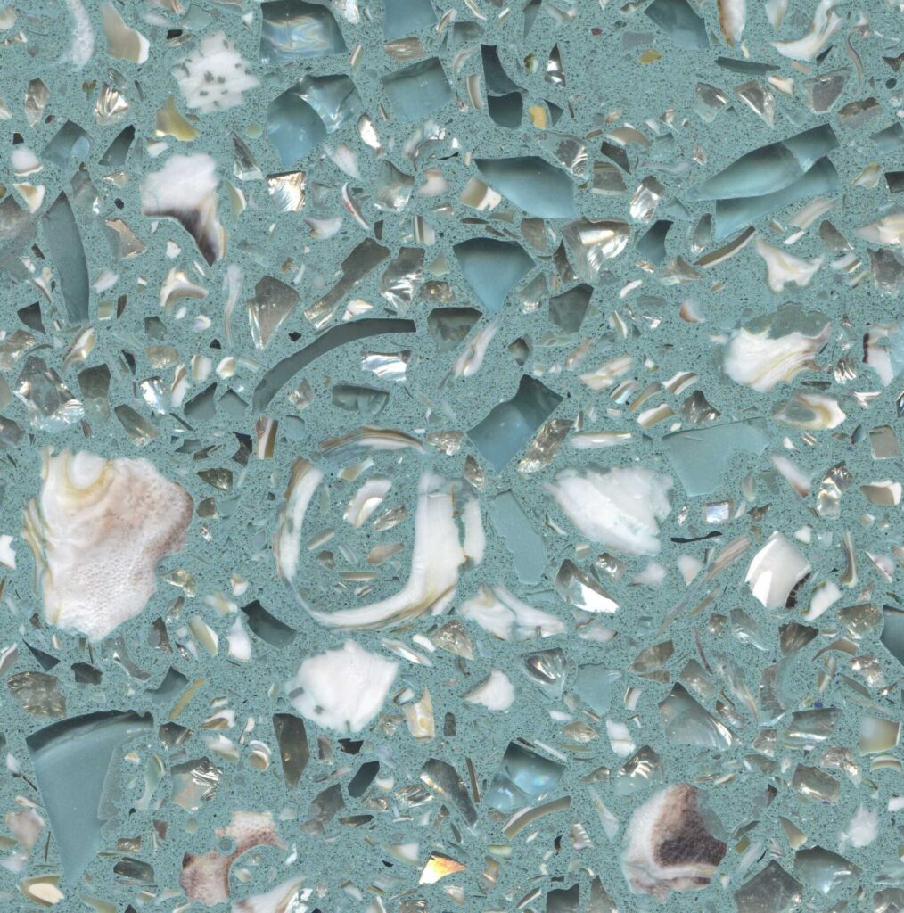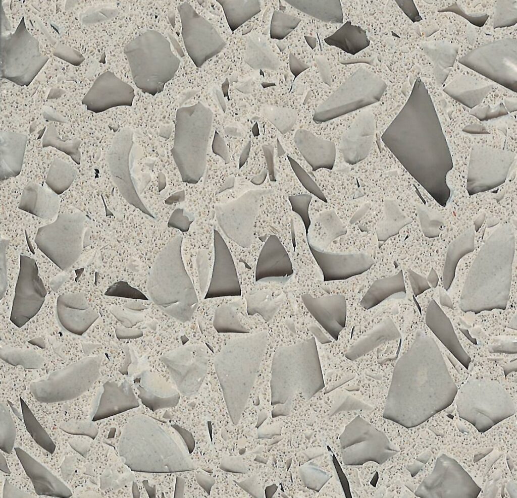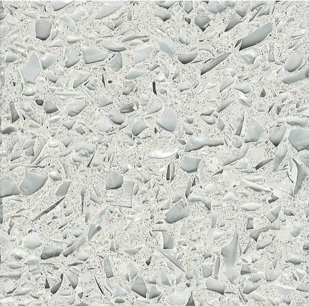 DEX Venizia is a concrete based terrazzo made in the flavor of traditional Venetian terrazzo. Its chunky look is the result of marble aggregate chips averaging ¾” to 1” and even up to 1 ½” in some finishes. Venizia is honed to a satin sheen and then sealed with a durable clear coat for superior protection.