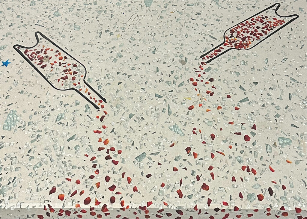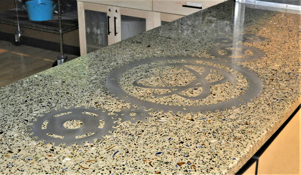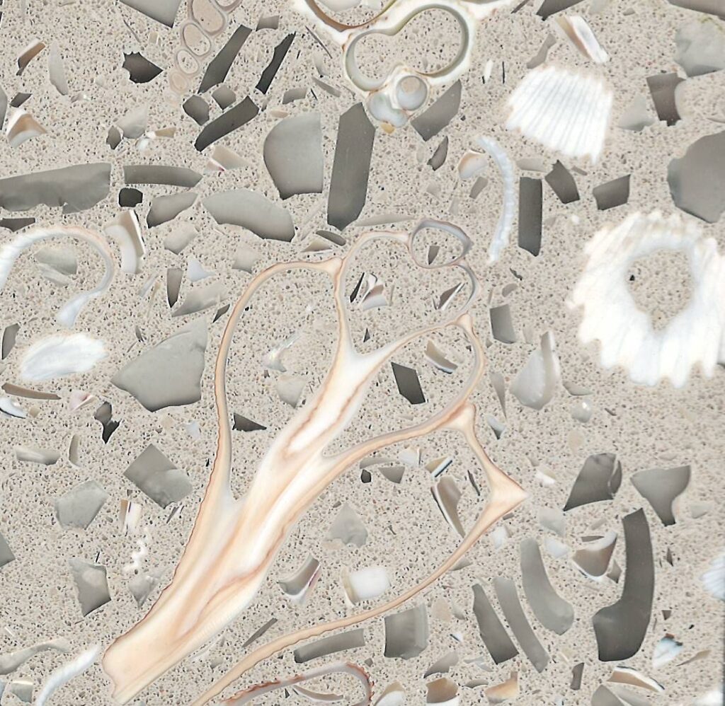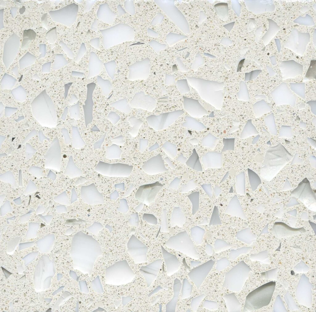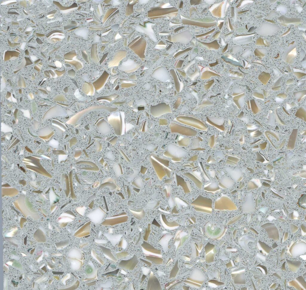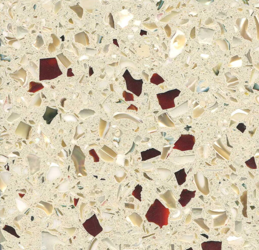 DEX Venizia is a concrete based terrazzo made in the flavor of traditional Venetian terrazzo. Its chunky look is the result of marble aggregate chips averaging ¾” to 1” and even up to 1 ½” in some finishes. Venizia is honed to a satin sheen and then sealed with a durable clear coat for superior protection.
