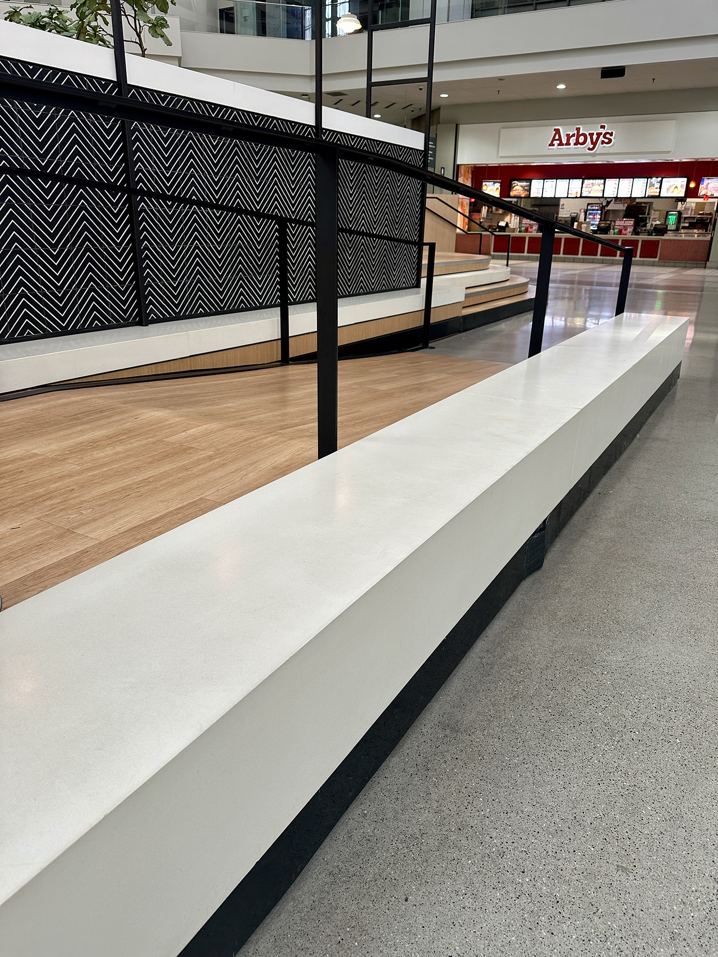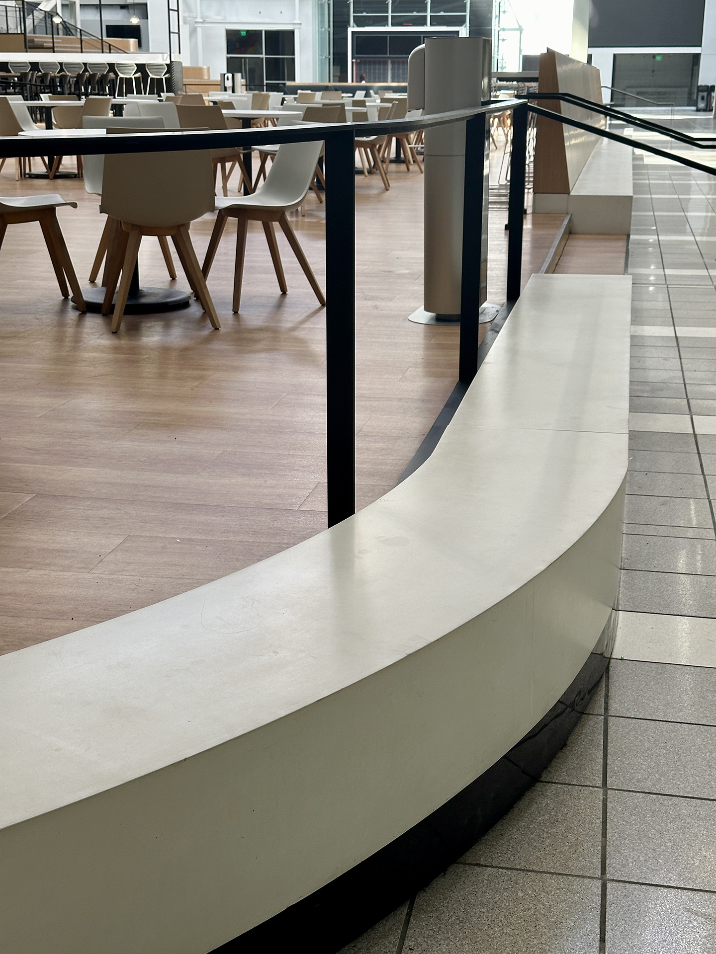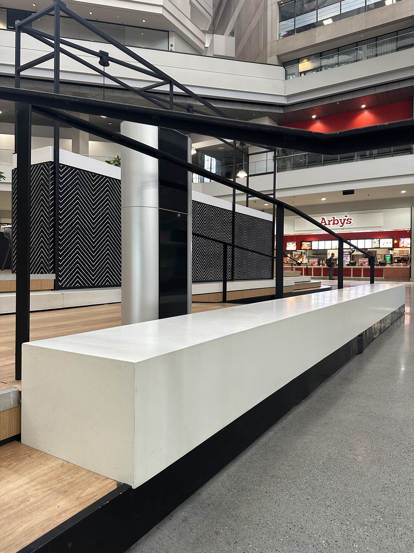 DEX contributed to the revitalization of The Center—formerly known as CNN Center—by fabricating a cohesive collection of custom concrete furnishings for the open-air atrium in downtown Atlanta. Designed to invite gathering, rest, and movement, the scope included radiused and straight benches, stair treads, and terrazzo planter lids.