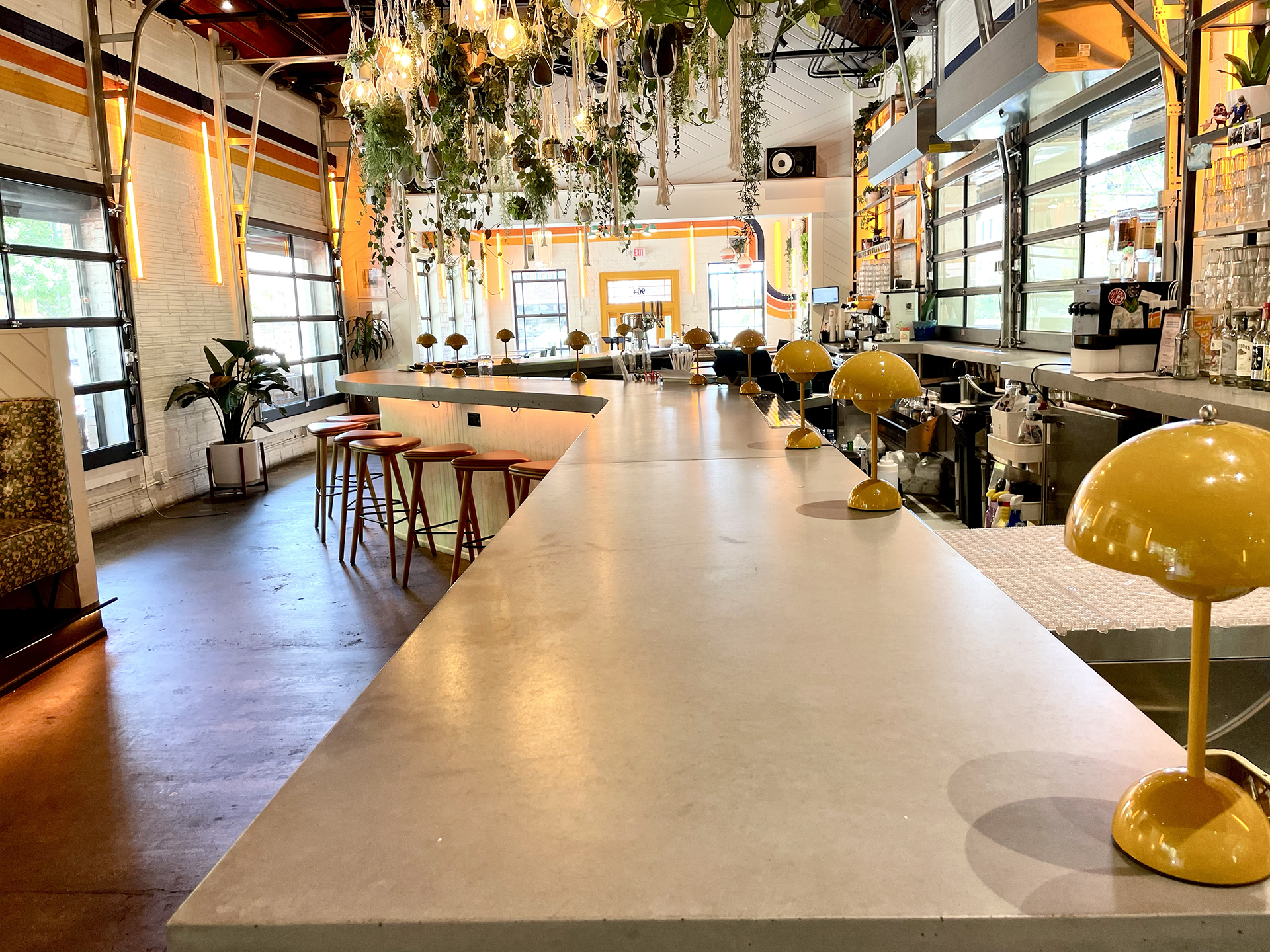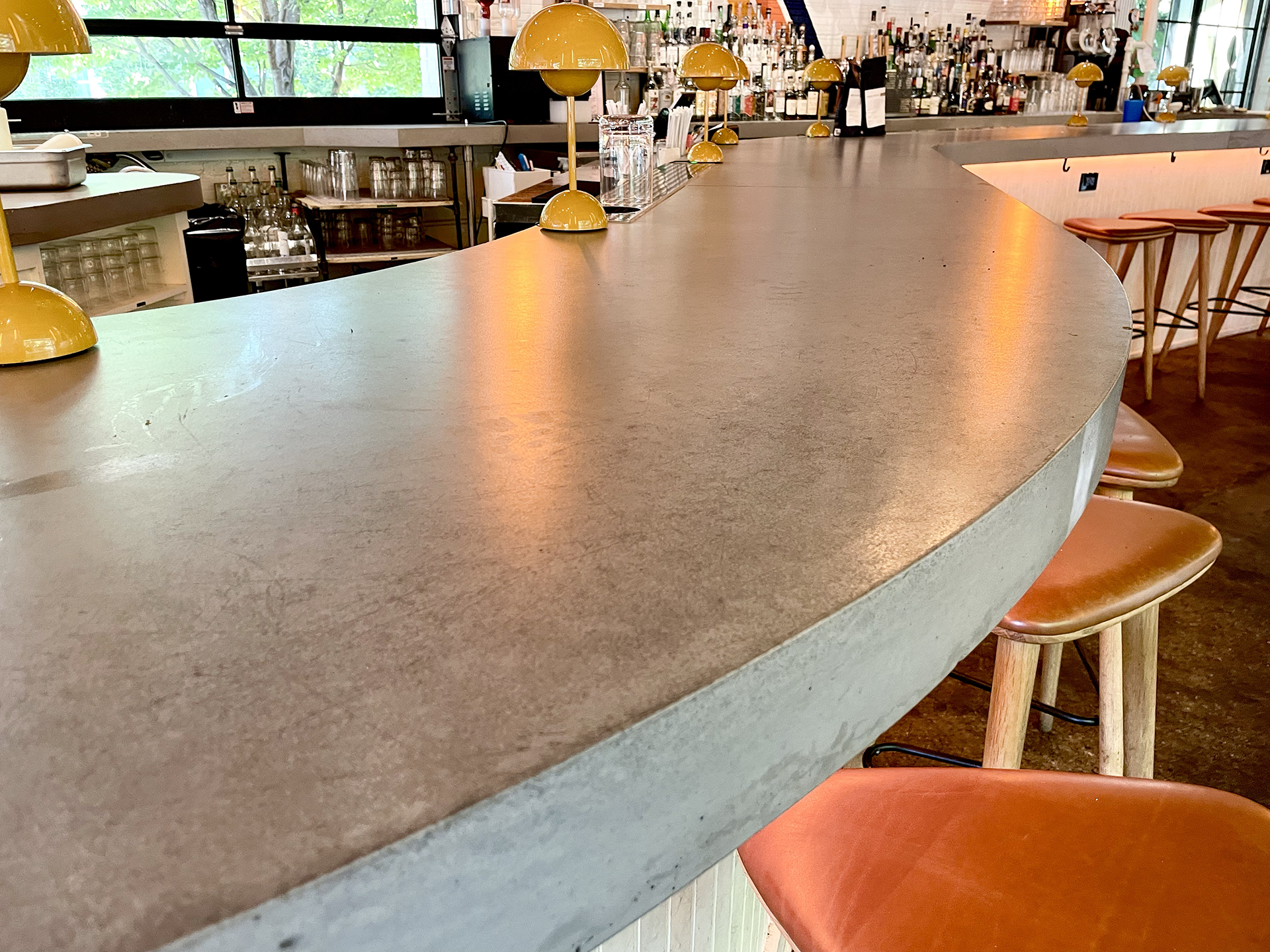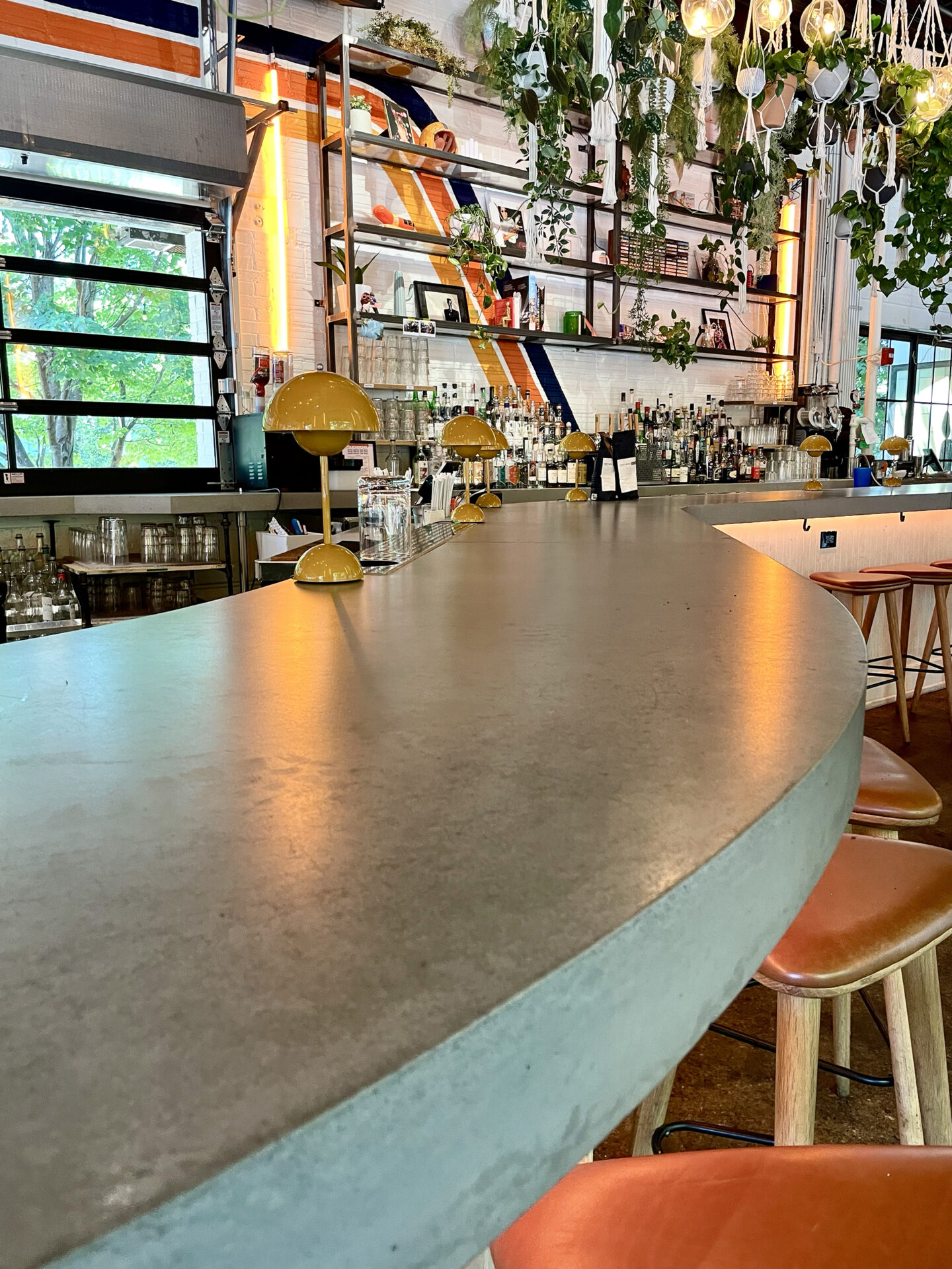 DEX contributed to this award-winning hospitality interior with a custom-cast high performance concrete countertop, designed to anchor the vibrant setting with a material that balances durability and character. The surface features a rustic matte finish, honed silky smooth for tactile comfort, giving the countertop both visual depth and a refined touch.