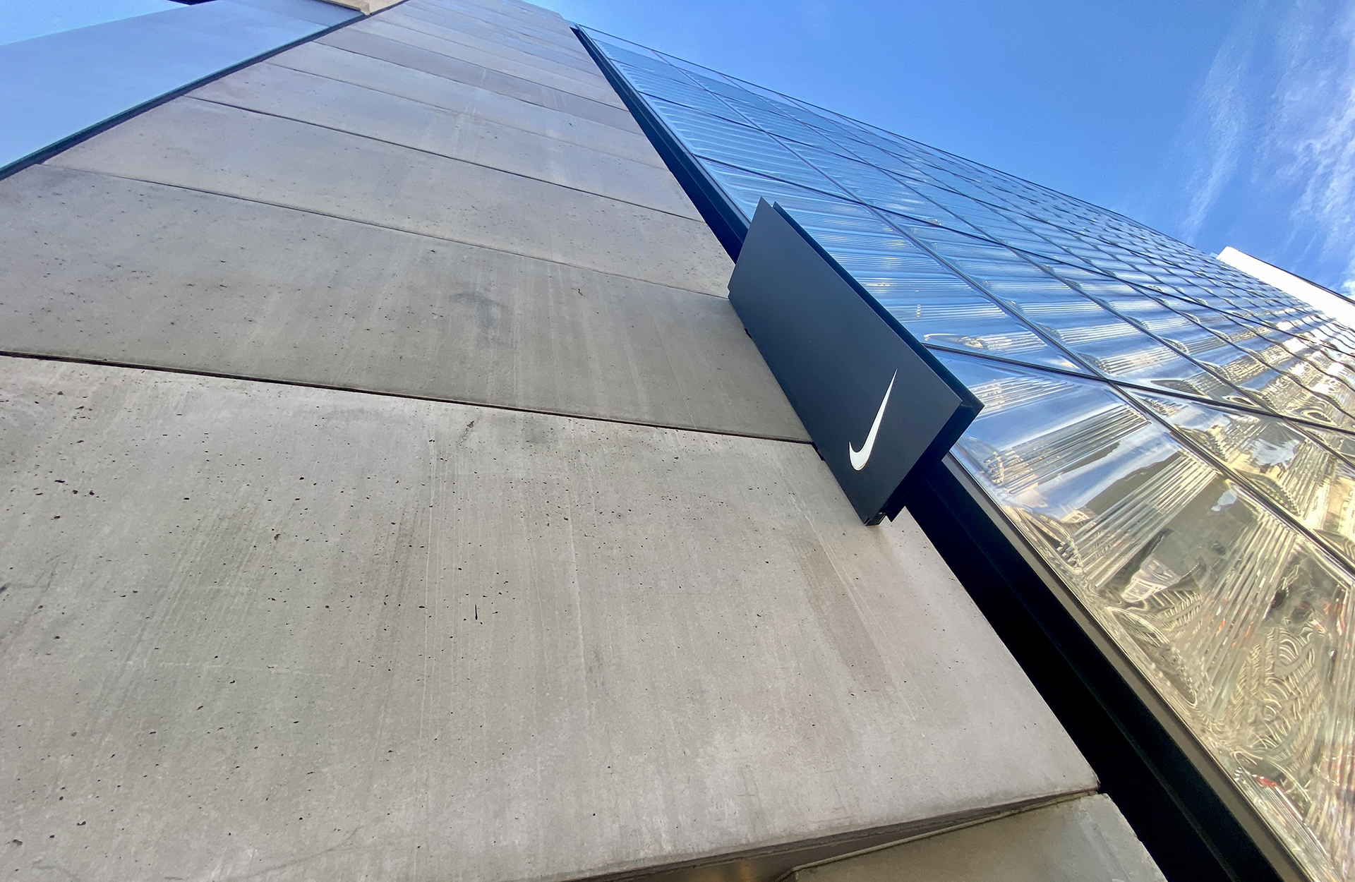 For Nike’s Fifth Avenue flagship store—one of the brand’s most ambitious retail environments—DEX collaborated with the Nike design team to create a dramatic elevator shaft accent façade. Drawing inspiration from Brutalist architecture, the design called for large-format high-performance concrete (HPC) panels with the raw, expressive character of cast-in-place concrete.