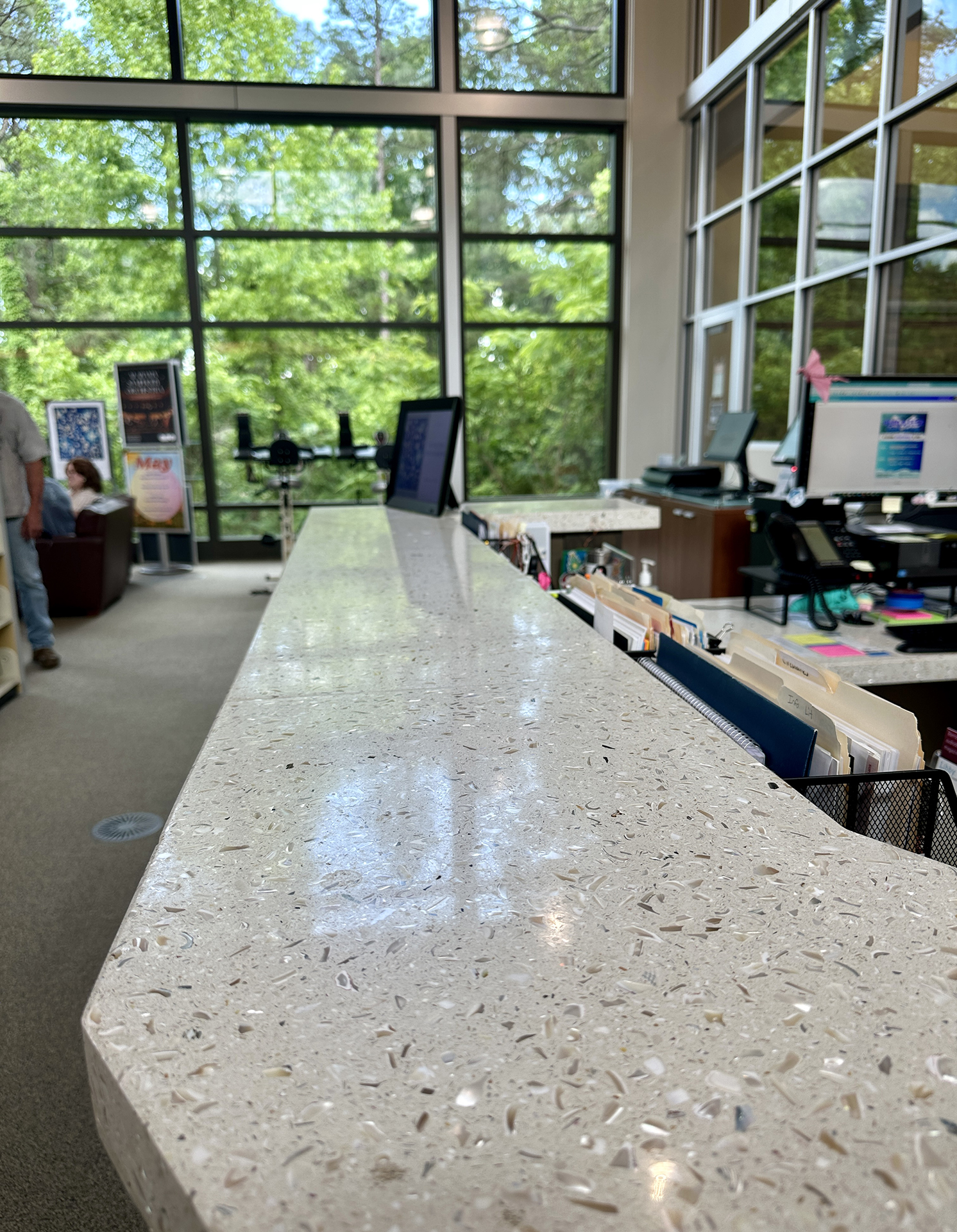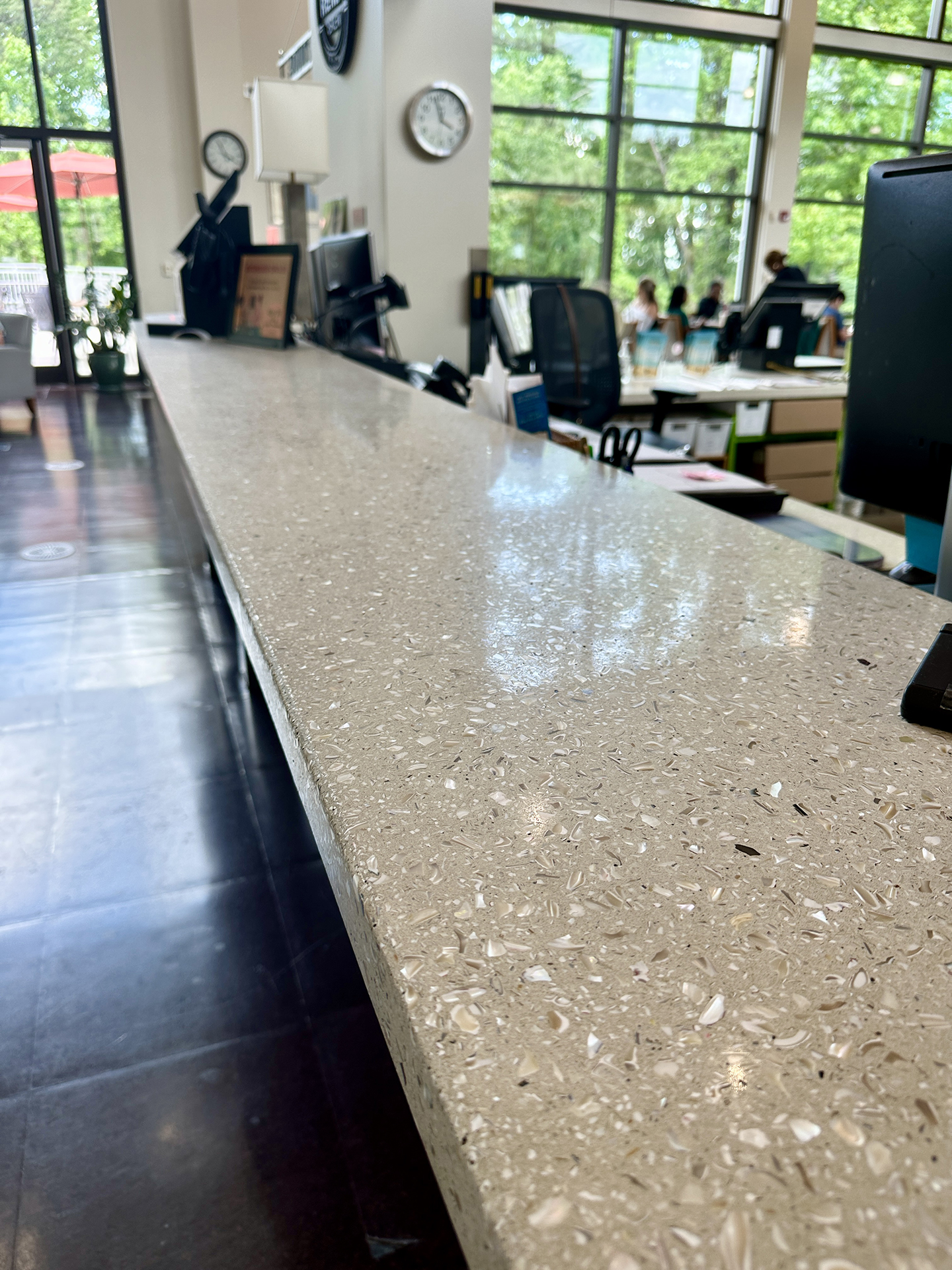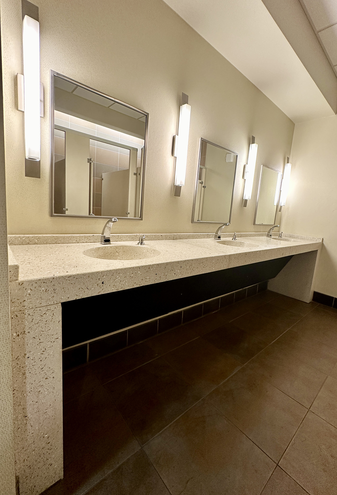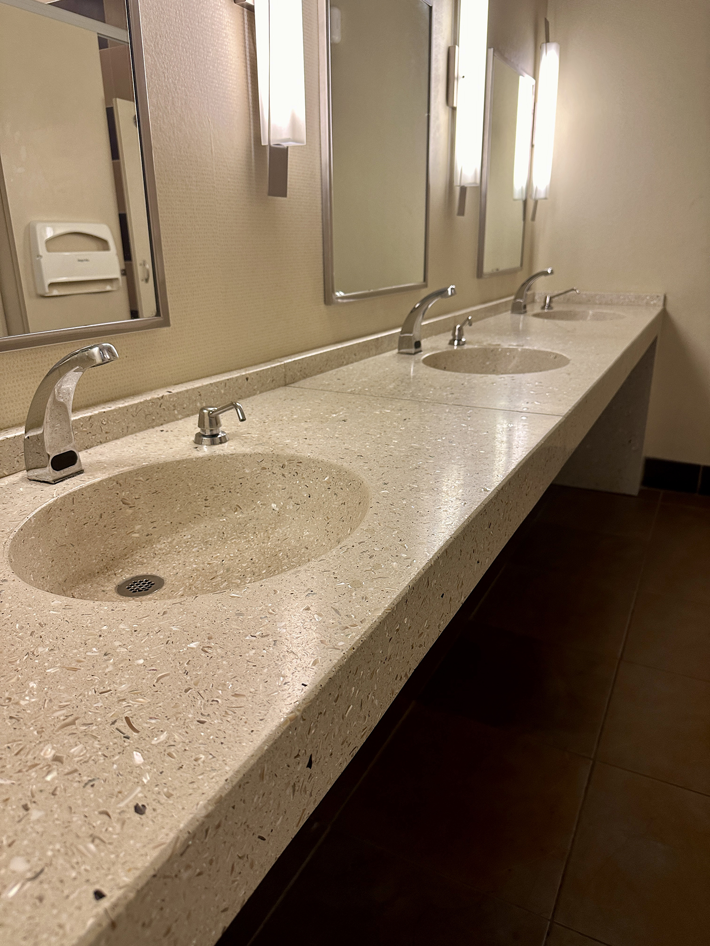 • Durable terrazzo countertops designed to stand up to high public use